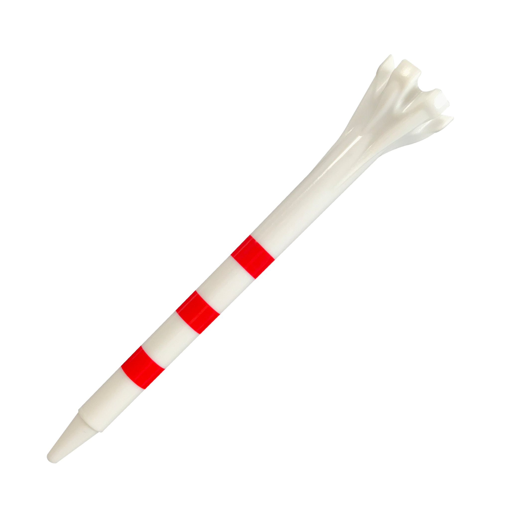 The Zarma FLYTee My Hite product line allows for the same height every time. The stripes on the tees show placement for consistent drives. The Zarma FLYTee My Hite tee also has a six prong head and a shallow cup design that reduces surface contact in order to promote additional distance and accuracy. There are also built in reinforced ribs for added durability and impact resistance.