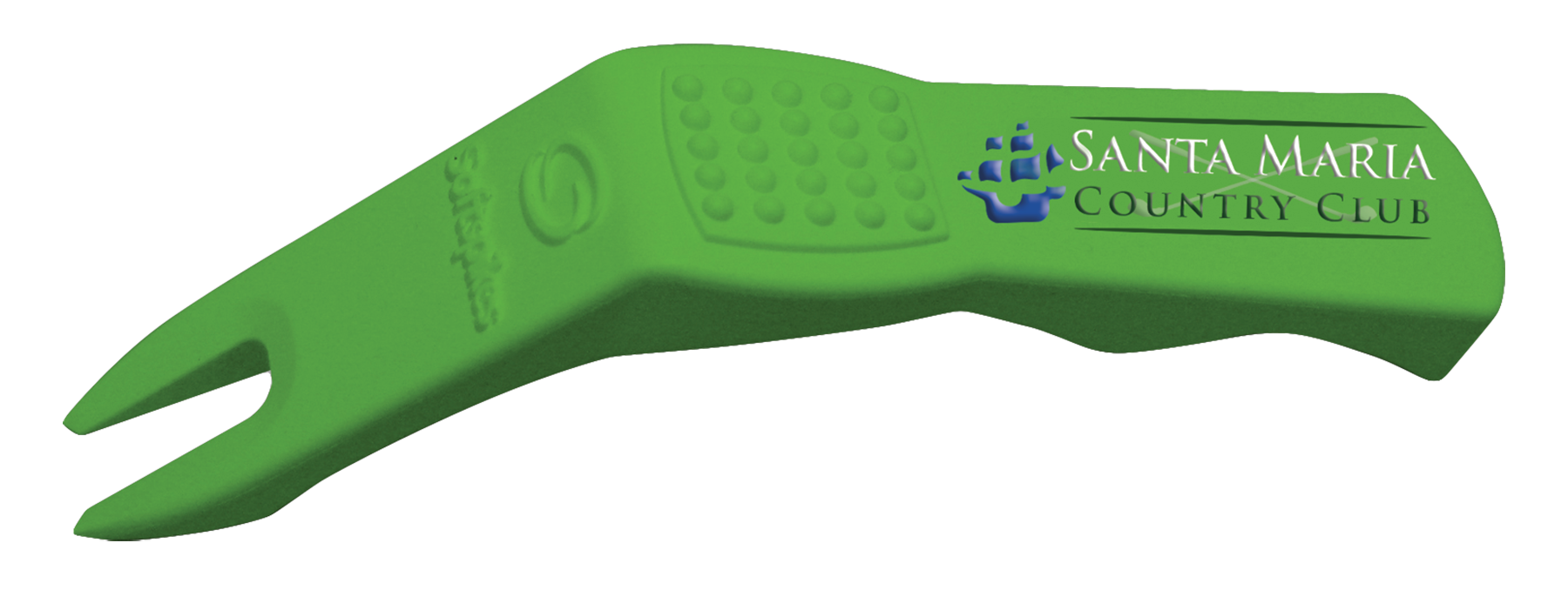 Powder coated (digital print), rubber handle (1-color print), Softspikes plastic push tool (digital print).