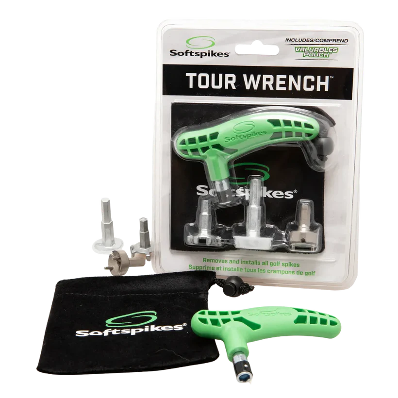 The Tour Wrench by Softspikes offers multiple bits to help you quickly remove and install replaceable traction elements and get back out on the course. The wrench features the 6-prong Tour bit, standard 2-prong insertion bit, and our Ripper bit for easy removal of work out spikes.